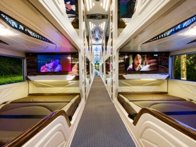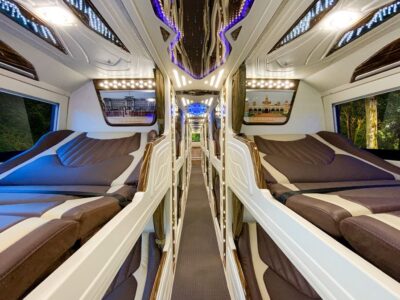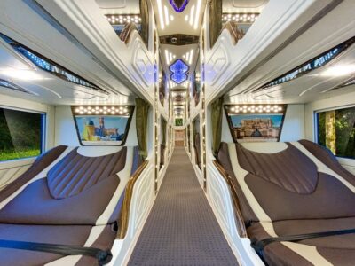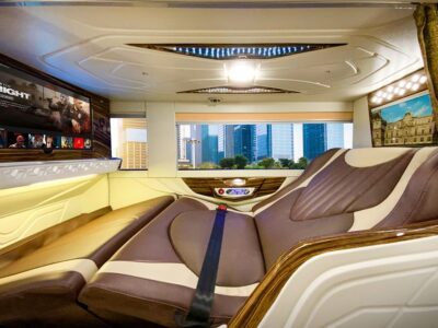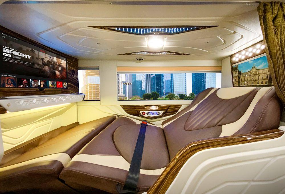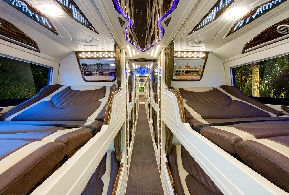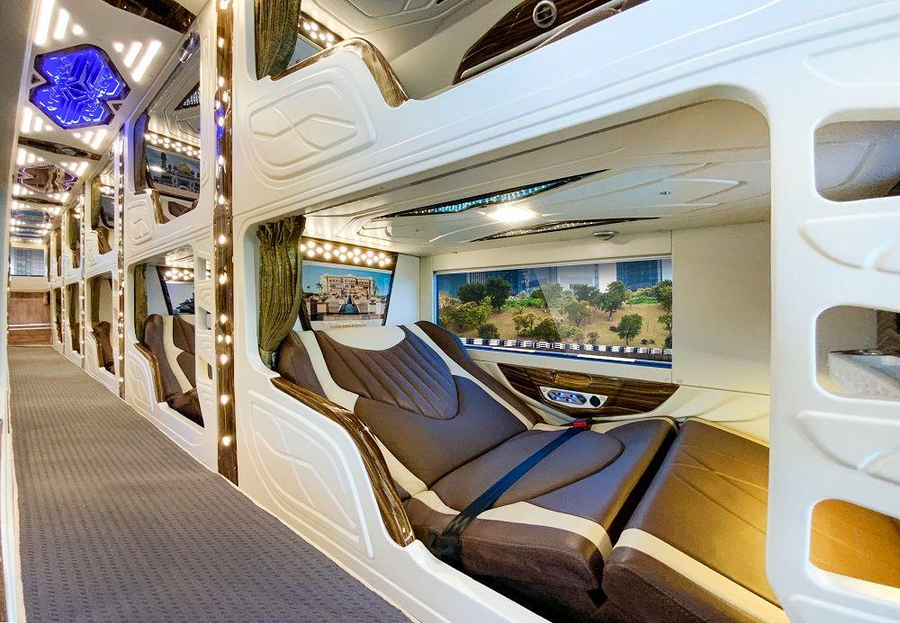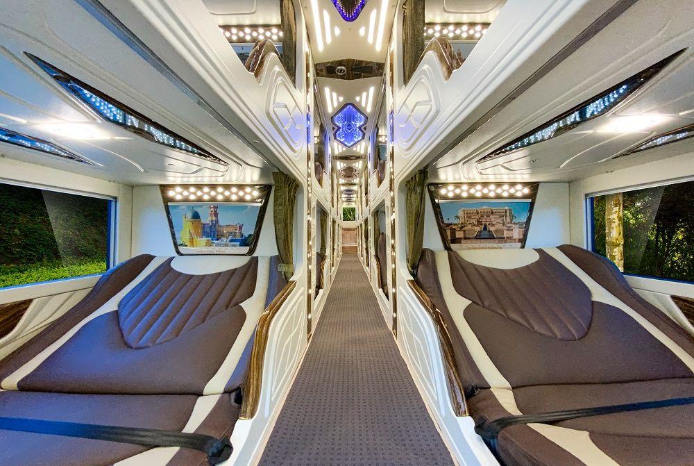 22 cung điện theo phong cách Hoàng gia, giường bọc da cao cấp thương hiệu Anh Quốc, được thiết kế gập duỗi bằng điện cơ động và trang bị massage cho chuyến đi thư giãn.